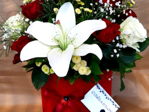 Boks-ruža, ljiljan, orhideja, margareta, karanfil,Raffaello