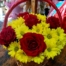 Cvetni aranžman korpica-ruža, margareta